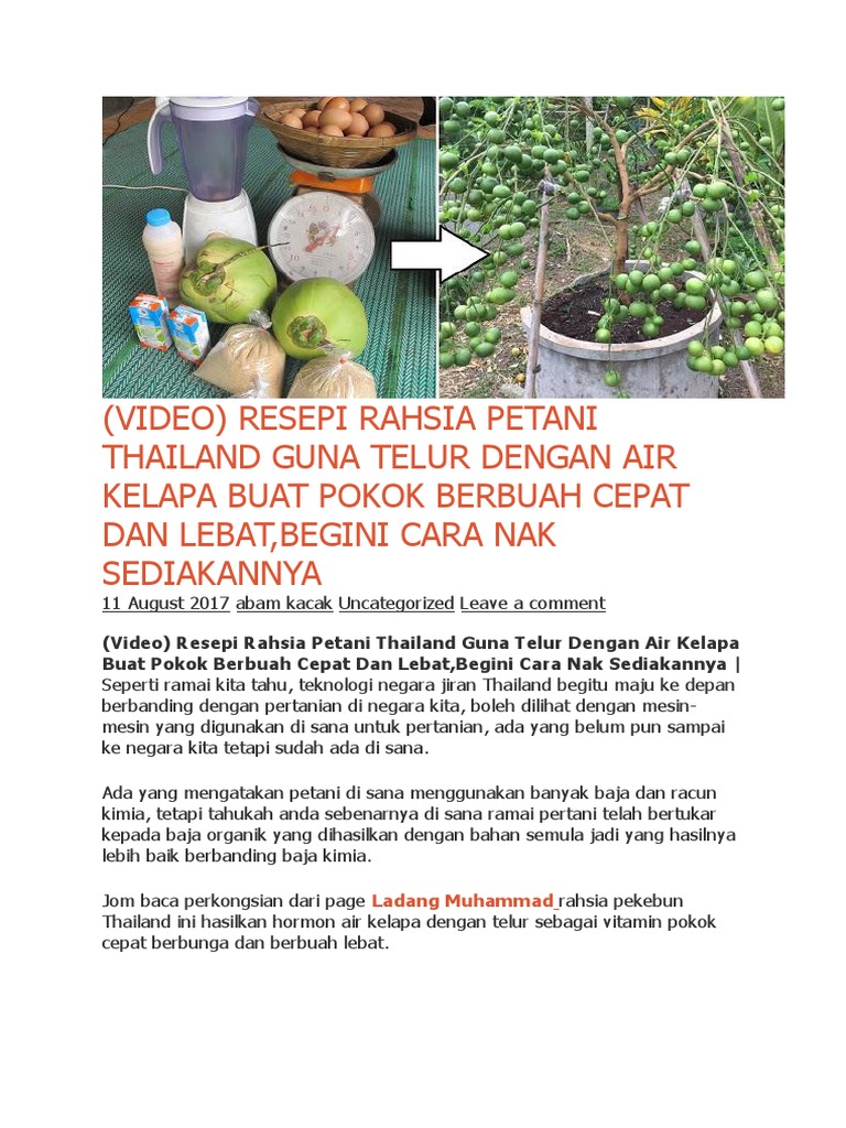 Video Resepi Rahsia Petani Thailand Guna Telur Dengan Air Kelapa Untuk Pokok Berbuah Cepat Dan Lebat Siakap Keli News