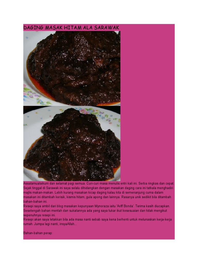 Resepi Daging Masak Hitam Sarawak Bahan Bahan 1 Kg Daging Dipotong Kecil 100gm Gula Merah Atau Gerek 150gm Kismis Hitam 3 Di 2020 Resep Masakan Masakan Simpel Makanan
