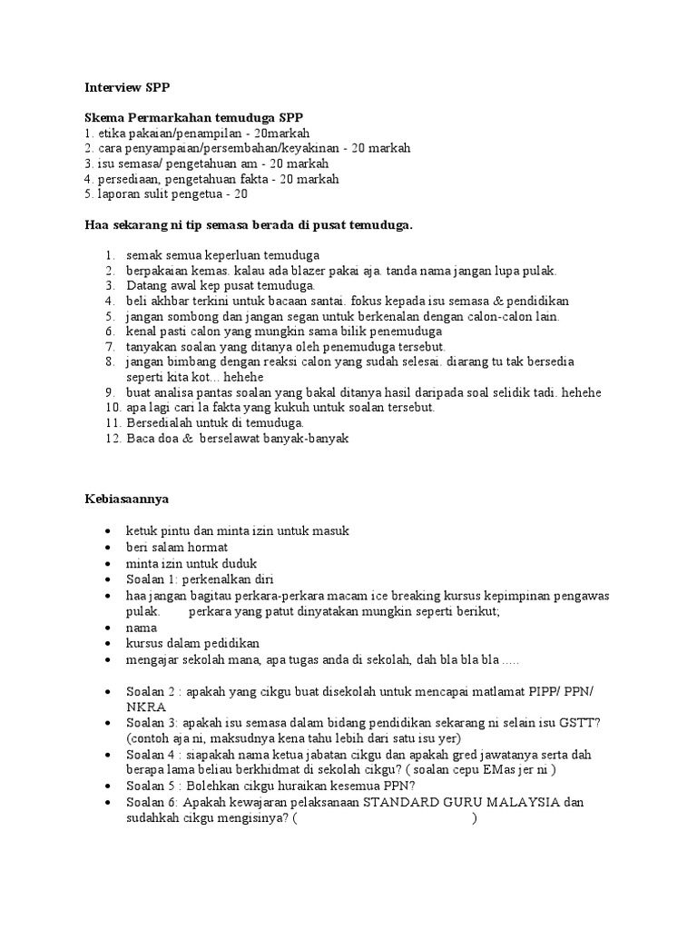Contoh Soalan Dan Jawapan Temuduga Spp Surasmi U