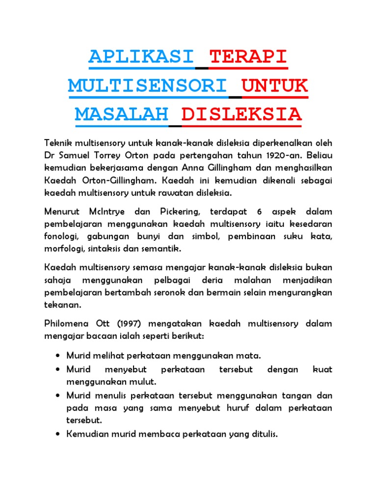 Aplikasi Terapi Multisensori Untuk Masalah Disleksia